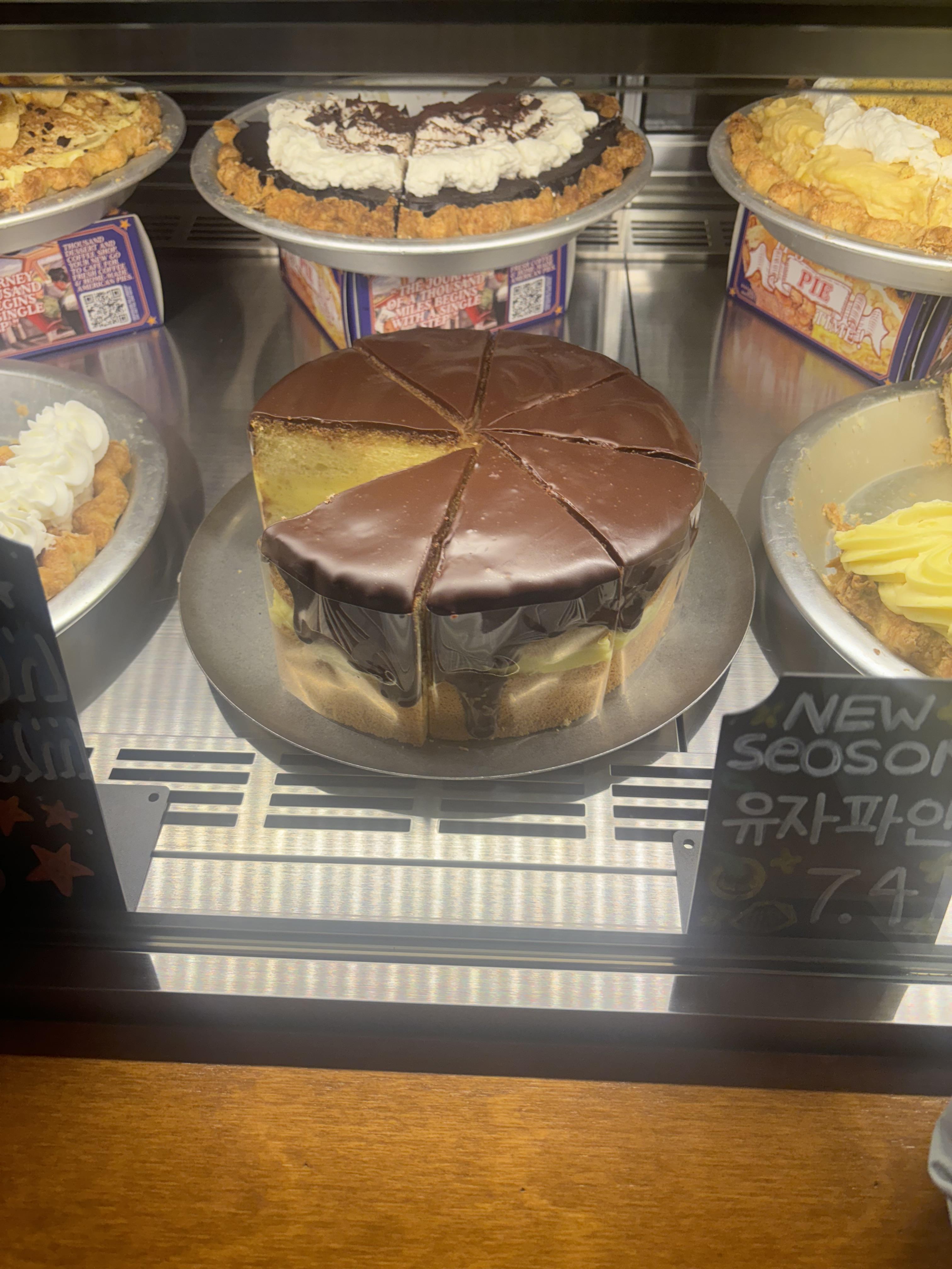 꾸덕한 느낌의 파이를 눈으로 보면서 고를 수 있다.