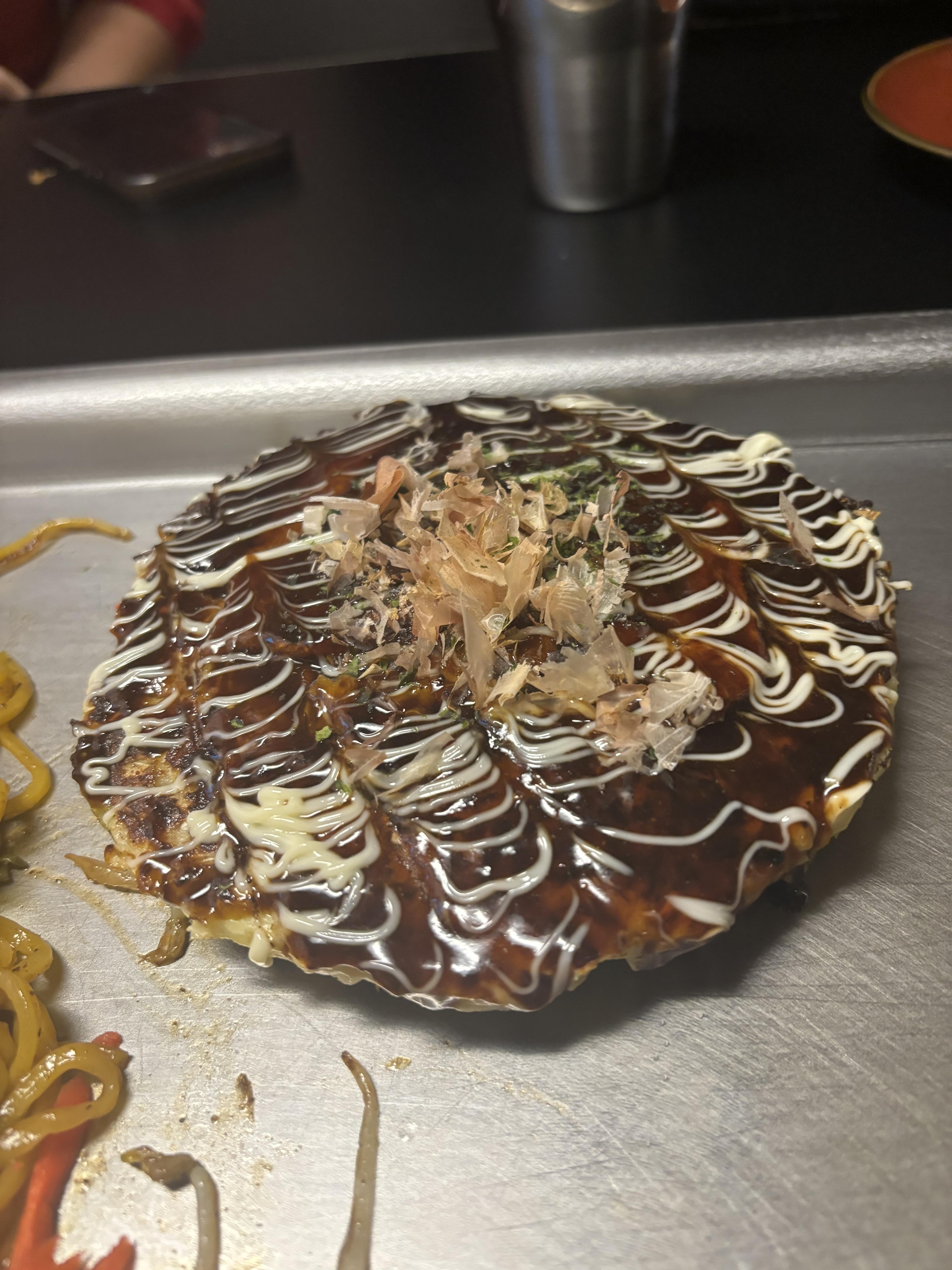 메인으로 주문한 오코노미야끼와 야키소바.