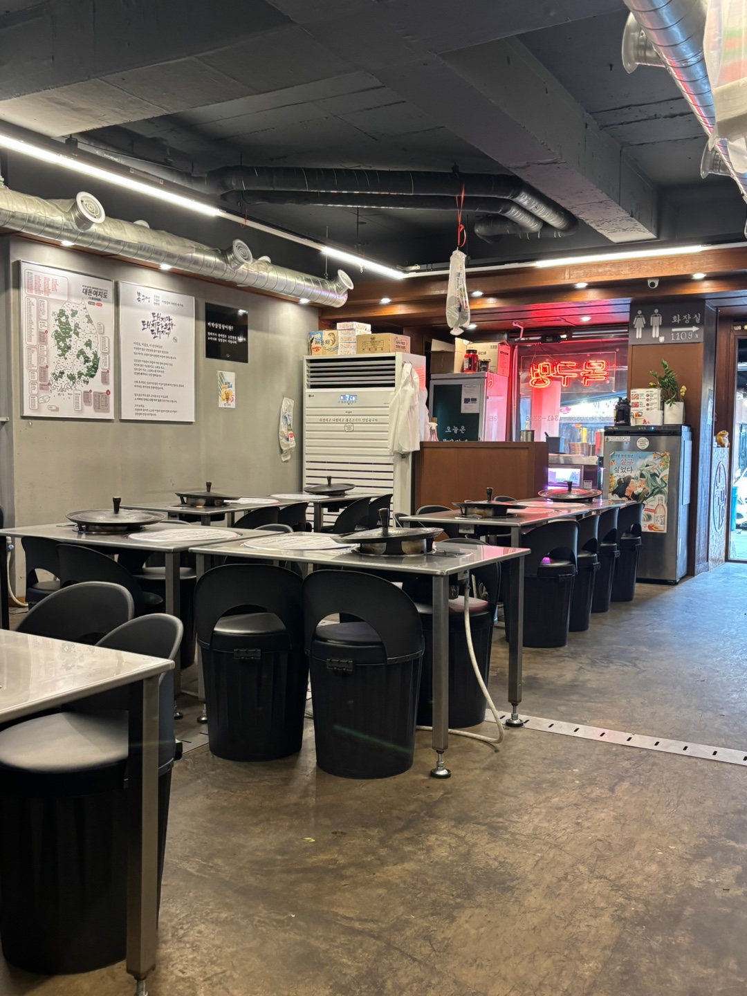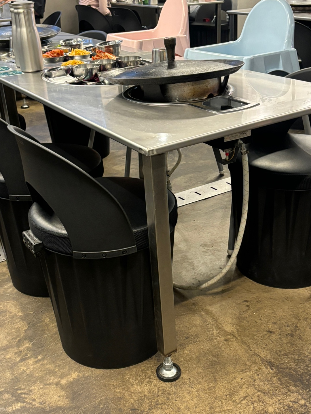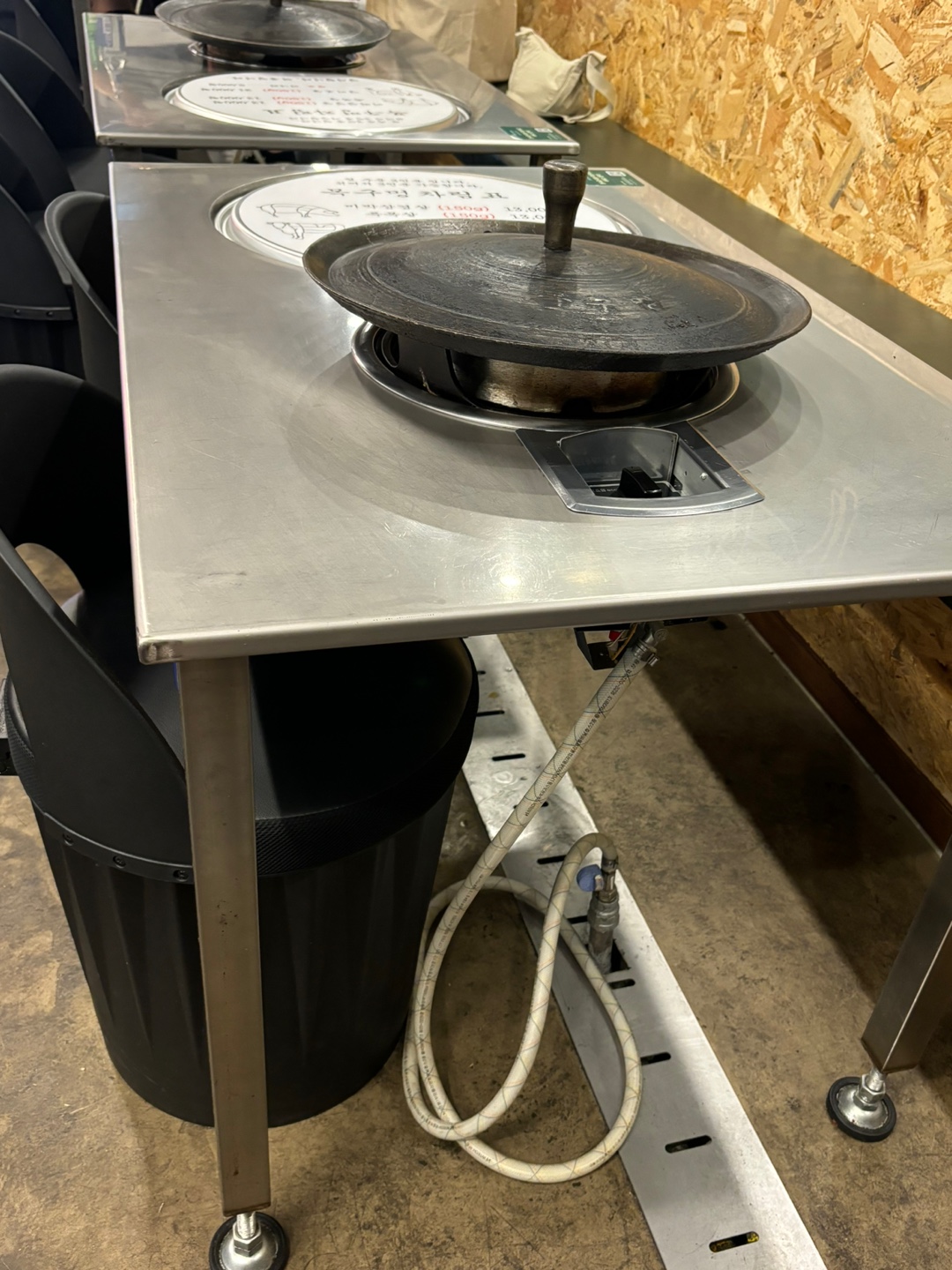 테이블마다 솥뚜껑 판은 모두 세팅 되어 있습니다.