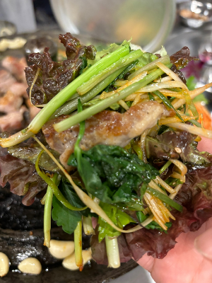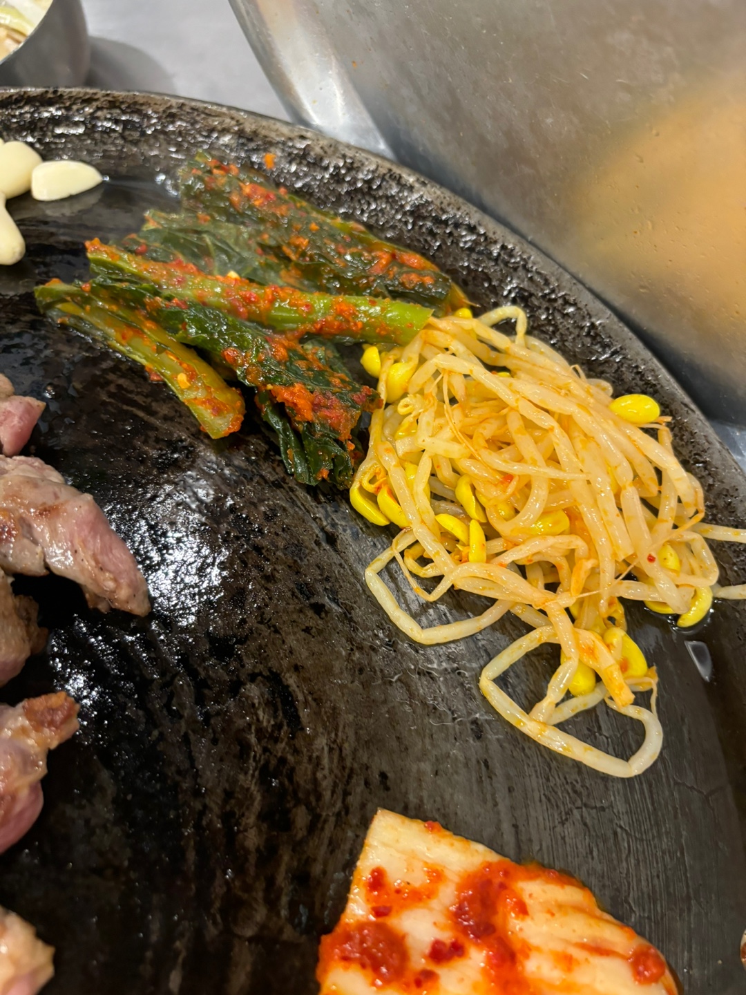같이 먹을 야채들도 모두 함께 구워지기 시작한다.